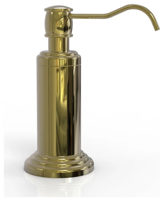 Add a stylish touch to your bathroom with this elegant Vanity Top Dispenser for Soap, Lotion or Hand Sanitizer. Generous 5 ounce capacity bottle holds plenty of your favorite soap, lotion or hand sanitizer. Made of solid brass and provided with a lifetime finish to insure products will never rust