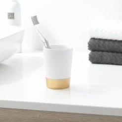 Deals ๐งจ Tumbler/Toothbrush Holder Sealskin Glossy White And Gold Polyresin ๐