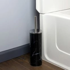 Outlet 🤩 HOME BASICS Hide-Away Faux Marble Toilet Brush Set, Black ✨