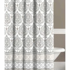 Buy 🥰 Chd Home Fabric Shower Curtain, Floral Damask With Geometric Border, Gray Taupe White ✨