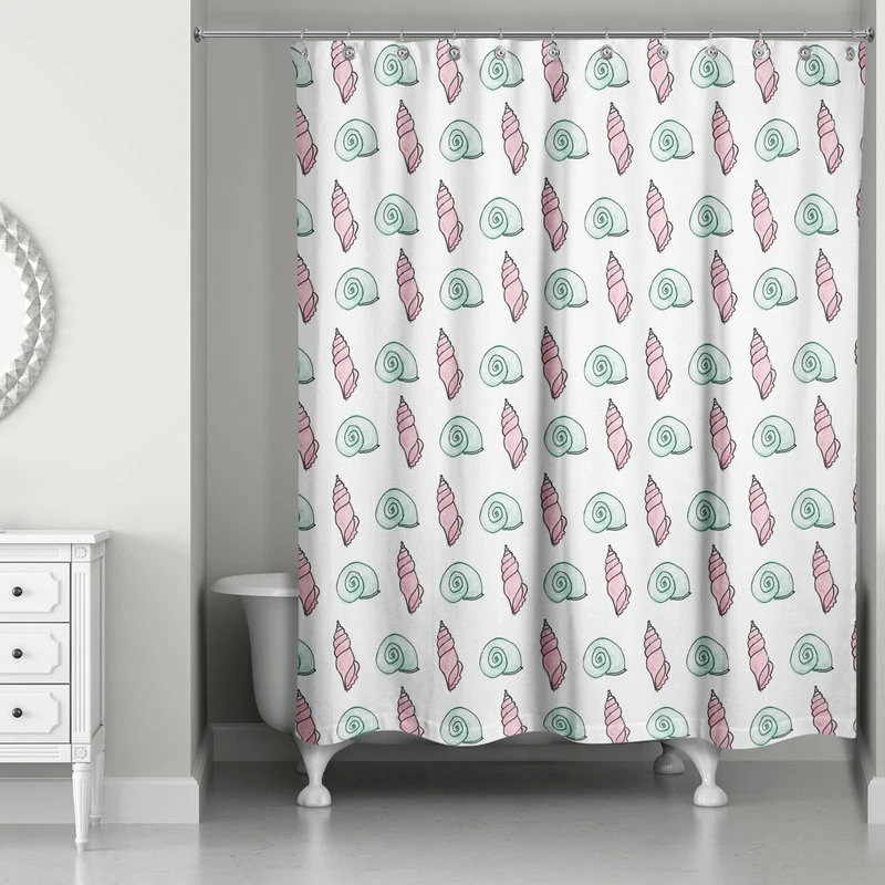 This shower curtain features cute shells to help you create a coastal look for your bathroom. This exclusive design is printed using a printing process that ensures the most vibrant colors are displayed on the fabric. The result is a beautiful design you’re sure to love. Shower curtains are made stitched enforced eyelits for hanging. Grommets, hooks and rod are not included.