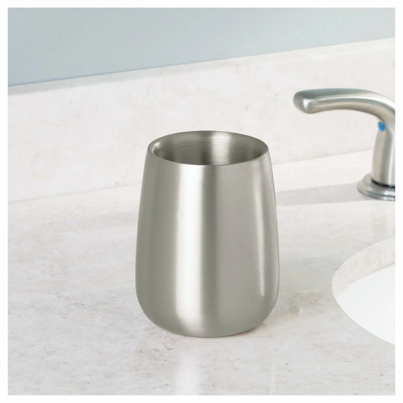 Add style and class to your bathroom or kitchen with the iDesign Nogu Tumbler! This high-quality tumbler can be used as a cup for a drink or a swish, or as storage for toothbrushes and combs. Constructed of durable steel, this tumbler is easy to clean and will last for years to come. The simple contemporary design easily matches with any room decor for a cohesive look. The iDesign Nogu Toothbrush Stand measures 3.25″ diameter” x 4″.