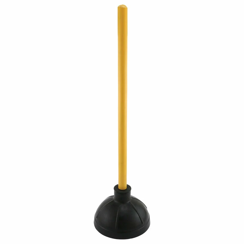 - This plunger is constructed of a rubber cup and a durable wooden handle. It features a 6 in. diameter, and it is designed for medium-duty use.
