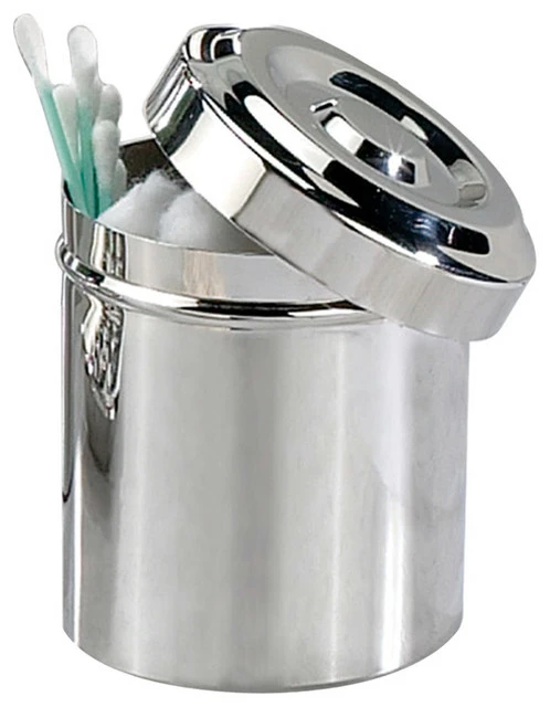 Store cotton swabs and Q-tips in the Gloss Container. Made from polished stainless steel, this lidded jar is modern and chic. Display it alongside other pieces from the Gloss bath collection for a cohesive look.