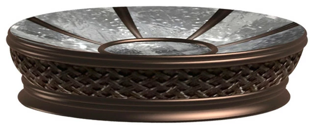Display a pretty bar of soap in the Ice Soap Dish. Made from bronze metal and ice-like hammered glass, this round soap dish is elegant and current. Display it alongside other pieces from the Ice bath collection for a cohesive look.