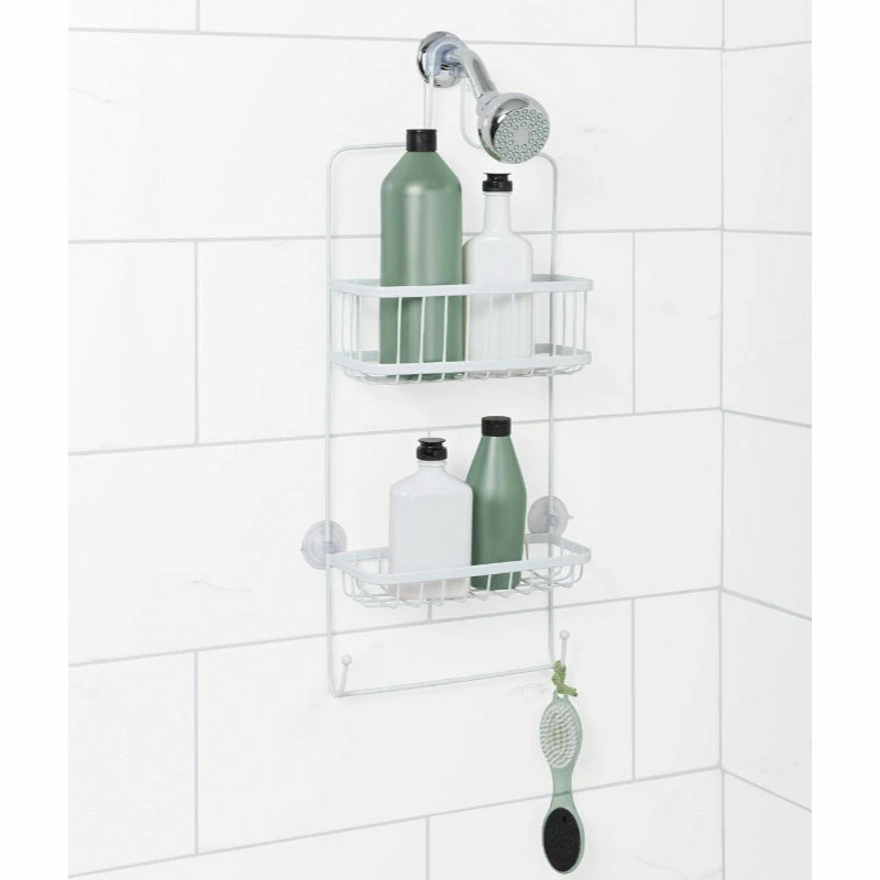 Organize your shower instantly with this easy to install, rust-resistant showerhead caddy. Provides storage for bottles, shower puffs, razors and more. Slip-proof collar and suction cups are included to secure caddy.